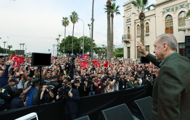 Bakanlarımız deprem gününden biz de depremin üçüncü gününden beri buralardayız. Cumhurbaşkanı olarak her şehrimizi defalarca Cumhur İttifakı olaak ziyaret ettik. Yapılan çalışmaları yakından izliyoruz. Zihnimiz de gönlümüzde hep sizlerle birlikte. Ramazan ayını da depremzede kardeşlerimizle geçiriyoruz. Dün Kahramanmaraş'taydık. Bugün Hatay'dayız. İnşallah diğer şehirlerimize de gideceğiz. Tüm yaralar sarılıp, yıkılan her şey daha iyisi ile yeniden inşa edilmeden buralardan ayrılmayacağız.
