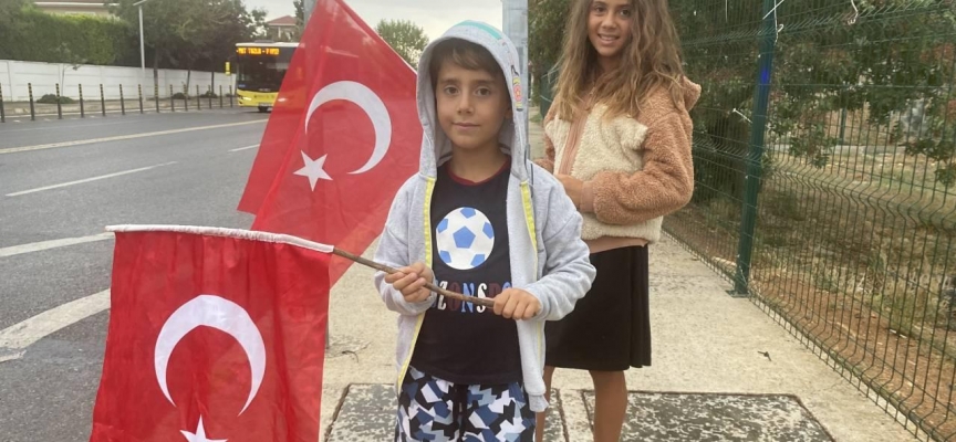 Yağmurlu havada yol üzerinde Erdoğan'ı bekleyen minik gözler vardı.