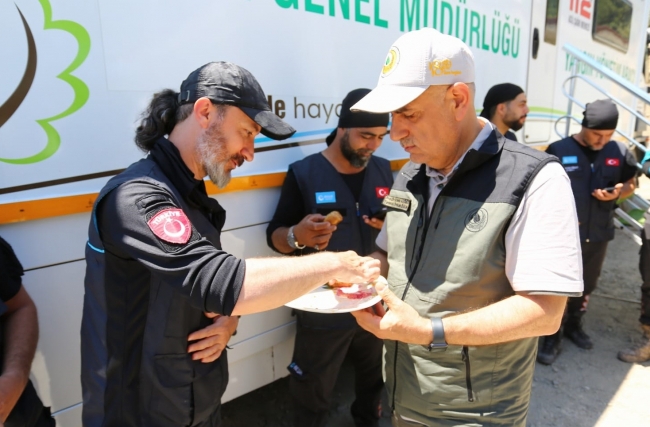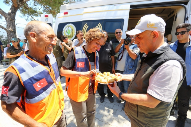 Tarım ve Orman Bakanı Vahit Kirişci, Mesudiye Mahallesi'nin Kocadağ mevkisindeki ormanlık alanda dün çıkan yangın sonrası soğutma çalışmalarının devam ettiği bölgelerde inceleme yaptı, ekiplere baklava ikramında bulundu.