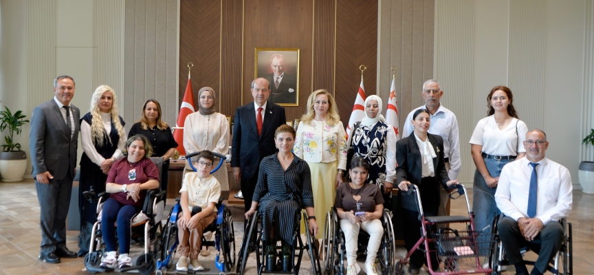 Cumhurbaşkanı Ersin Tatar ve Eşi Sibel Tatar, Tekerlekli Sandalye Dans Milli Takımı sporcusu, 2019 Rusya Kıtalararası ve Dünya Kupası Şampiyonu Yeliz Güllü ile bir araya gelerek, görüştü.