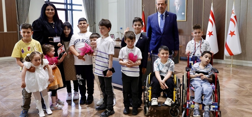 Cumhurbaşkanı Ersin Tatar, 23 Nisan Ulusal Egemenlik ve Çocuk Bayramı nedeniyle Cumhurbaşkanlığı Yeni Yerleşkesinde özel eğitim öğrencilerini kabul etti.