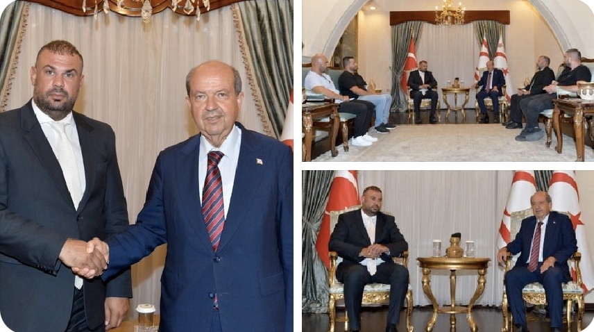 Cumhurbaşkanı Ersin Tatar, Drift NEU Racing Team pilotu Avrupa Ṣampiyonu Enver Haskasap ve ekibini kabul etti.