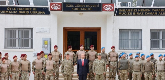 Cumhurbaşkanı Tatar, Güvenlik Kuvvetleri Komutanlığı’nın 1974 Mutlu Barış Harekatı sonrası Kıbrıs Türk Halkının oluşturduğu düzenli ordusu olduğuna dikkat çekerek, “Güvenlik Kuvvetleri Komutanlığı kurulana kadar büyük mücadeleler verildi. Türk Mukavemet Teşkilatı mensupları ve Türkiye’den adaya silah getiren bereketçiler, büyük zorluklara hayatlarını adayarak, Kıbrıs Türk Halkına hizmet verdi” dedi.