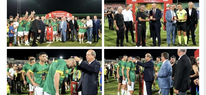 Cumhurbaşkanı Ersin Tatar, maç sonrası düzenlenen ödül töreninde takımlara ve maçı yöneten hakemlere kupa ile madalyalarını takdim etti.