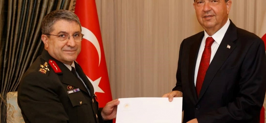 Cumhurbaşkanı Ersin Tatar, 20 Temmuz 1974 Mutlu Barış Harekâtı’nın 48. yıldönümü törenlerine katılmak üzere KKTC’de bulunan Türkiye Cumhuriyeti Milli Savunma Bakanlığı temsilcisi Orgeneral Selçuk Bayraktaroğlu’nu kabul etti.