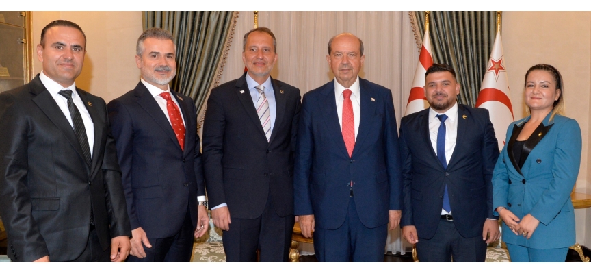Cumhurbaşkanı Ersin Tatar, Kıbrıs Barış Harekâtı’nın 50. yıl dönümünü kutlamaları çerçevesinde Yeniden Refah Partisi Başkanı Fatih Erbakan ve beraberindeki heyeti kabul ederek görüştü.