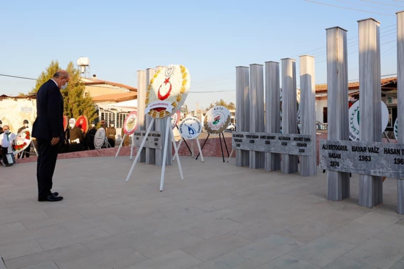 Cumhurbaşkanı Tatar, Rum-Yunan liderliğinin, ENOSİS’i silah zoruyla gerçekleştirebilmek için faşist EOKA terör örgütünü kurduğunu, EOKA terör örgütünün kurulmasıyla birlikte, Kıbrıs Türk halkına yönelik silahlı saldırıların yoğunluk kazandığını, masumları katleden bu zihniyetin tek hedefinin, Kıbrıs’ı bir Yunan Adası’na dönüştürmek olduğunu, 12 Temmuz 1958’de Gazimağusa’ya işçi taşıyan otobüsün EOKA’cılar tarafından pusuya düşürüldüğünü ve 11 Kıbrıslı Türk’ün şehit edildiğini anlattı.