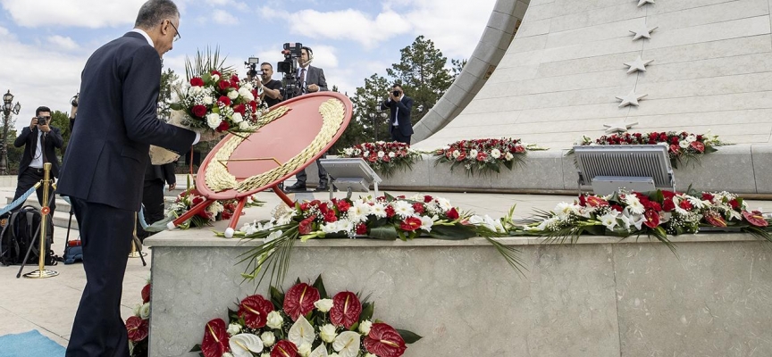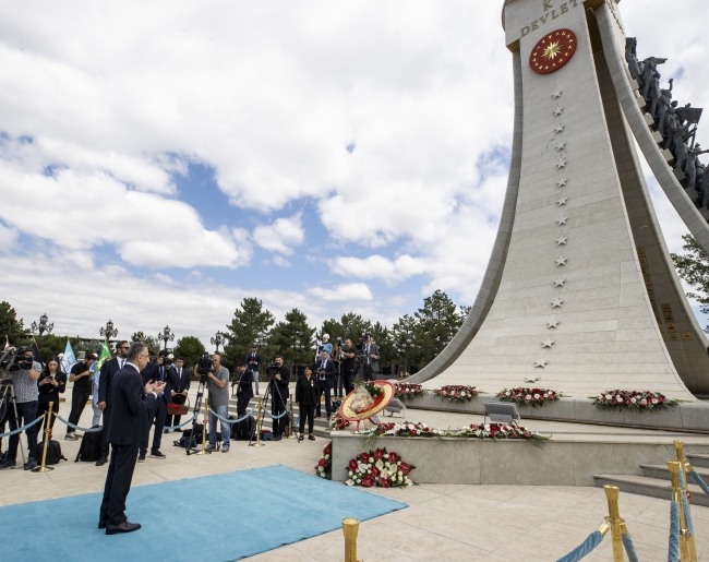Oktay daha sonra Fetullahçı Terör Örgütü'nün (FETÖ) 15 Temmuz 2016'daki darbe girişiminde vurularak yaralanan dönemin Terörle Mücadele Daire Başkanı Turgut Aslan'la anıtın önüne kadar yürüdü.