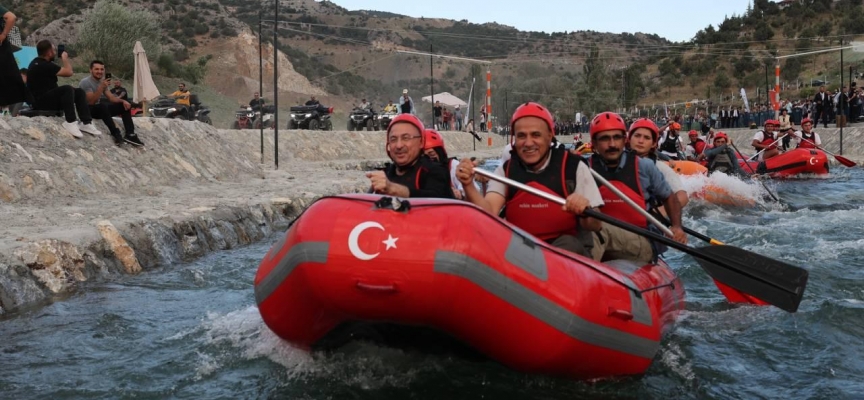 Konuşmaların ardından Oktay ve Kirişci, parkurda rafting yaptı.