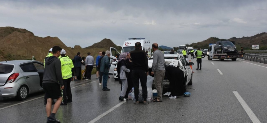 Samsun istikametinde seyir halinde olan 6 araç çarpıştı. Kazada araçlarda bulunan 5 kişi yaralandı.