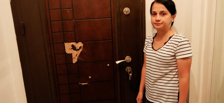 "Annemi getireceğim' diyerek ev sahibi bizi evden çıkartmak istedi. Biraz süre istedik. Telefon ile eşimi arayıp 'Evimi hemen boşaltın.' diye hakaretler etmiş. Eşim konuşmak için iş yerine çağırmış. Telefonu kapattıktan hemen sonra ev sahibi eve geldi. Kapıyı açtım, elinde balta ile eve zorla girmeye çalıştı. Aramızda arbede yaşandı ve kapıyı kapatmayı başardım. Balta ile kapıya vurdu. Kapının her yerini kırdı. Çocuğum o sırada titremeye başladı. Çocuğu korumaya çalıştım. Komşularım yardıma koşunca uzaklaştı. Bunu yapanın öğretmen olması da çok üzücü."