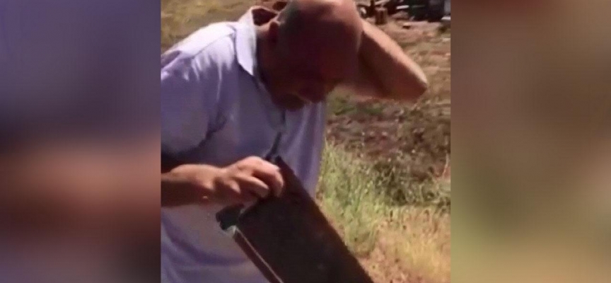 "Biz alışkınız, dede mesleğimiz" diyerek peteği elinde tutan kişi, bir anda kızgın arıların saldırısına uğradı