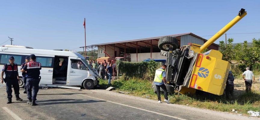 54 yaşındaki Burhan K. yönetimindeki işçi taşıyan servis minibüsü, İsabey Mahallesinde Süleyman Ç. idaresindeki biçerdöverle çarpıştı.
