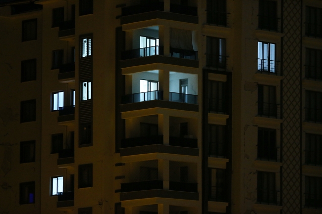Malatya'nın Yeşilyurt ilçesine bağlı Yakınca Mahallesi'ndeki hasarlı binalara girişin yasak olması nedeniyle bir daha söndürülemeyen ışıklar, karanlık çöktüğünde boş ve sessiz evlerin hüznünü, depremin acı yüzünü görünür kılıyor.