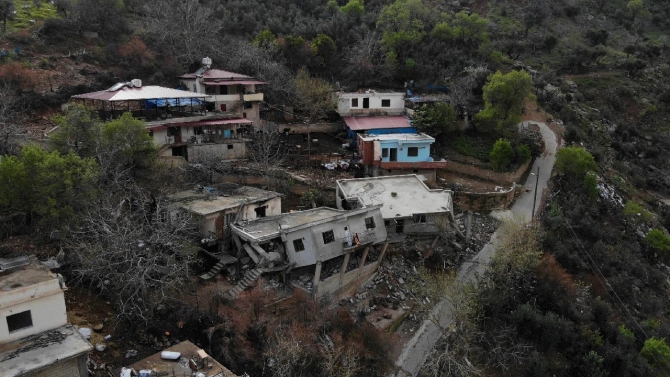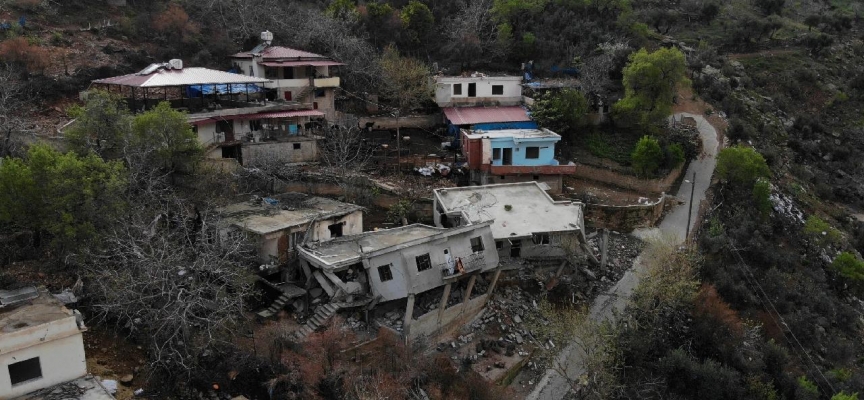 Dağlarda derin yarıkların oluştuğu depremde tonlarca ağırlığındaki kayalar adeta mahallenin üzerine yıkıldı.