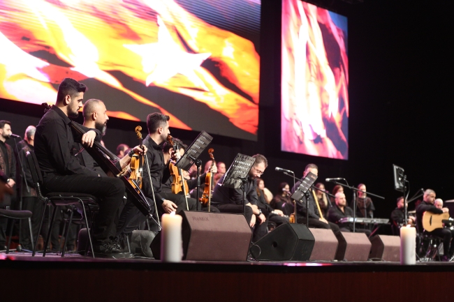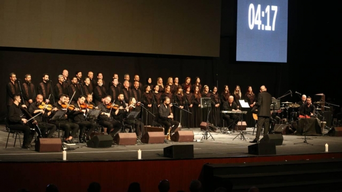 Yılmaz Özfırat'ın yönettiği Antakya Medeniyetler Korosu, Kahramanmaraş merkezli depremlerde yaşamını yitiren 7 üyesi anısına sahnede 7 mum yaktı.