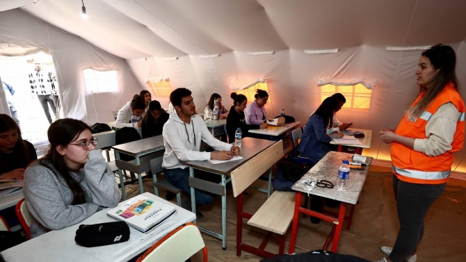Depremin kendilerini psikolojik olarak etkilediğini dile getiren Tekbaş, "Zor koşullarda ders görüyoruz. Çadırlarda çok kişi kaldığımız için ders çalışma ortamımız bulunmuyor. Burada hazırlanıp üniversiteye gitmenin benim için ayrı bir yeri olacak her zaman. Nereye gidersem gideyim burayı asla unutamayacağım, unutmak da istemiyorum" dedi.
