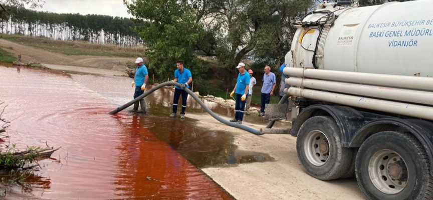Bakanlık ve belediye ekipleri kirliliğin Susurluk Çayı ve Marmara Denizi'ne ulaşmaması için çalışmalarını dün akşam saatlerinden bu yana aralıksız sürdürürken vidanjörlerle çekilen kirlilik bölgedeki su arıtma tesisine götürülüyor.