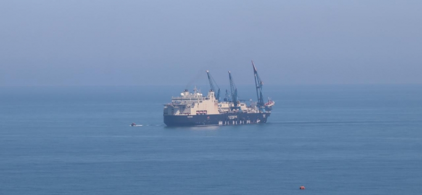 İlk olarak sığ kısımlarda başlayan boru serim işleminde derin denizdeki aşamaya geçiliyor.