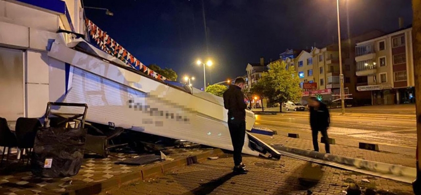 Kazayı gören çevredeki diğer sürücüler polis ekiplerine haber verirken mağazada büyük maddi hasar meydana geldiği görüldü.