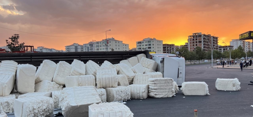 Savrulan pamukların ve kamyonun kavşaktan kaldırılmasıyla yol trafiğe açıldı.