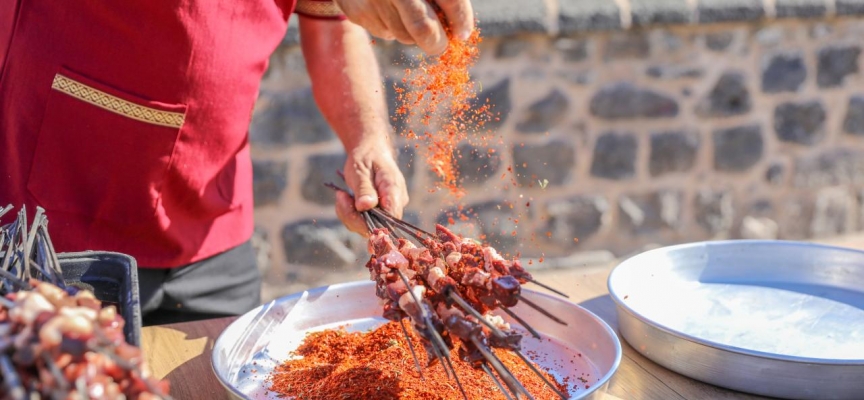 Şenlikte, sabahın erken saatlerinden itibaren kurulan çok sayıda tezgahta hazırlanan yaklaşık 600 porsiyon ciğer kebabı, katılımcılara ikram edildi.
