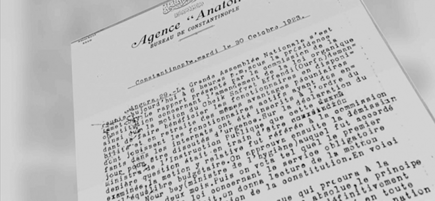 Türkiye'nin ilk resmi haber ajansı olan Anadolu Ajansı da cumhuriyeti Fransızca bültenle dünyaya duyurdu. Bültende, Cumhuriyet'in ilan edilme süreci anlatıldı. Gazi Mustafa Kemal'in cumhurbaşkanı seçildikten sonraki konuşmasına yer verildi.