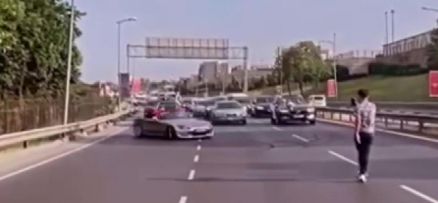 Otogar Bağlantı Yolu Hal kavşağında düğün konvoyunun ön tarafında drift yaparak trafiğin akışını engelleyen 34 YEH 35 plakalı aracın sürücüsü tespit edildi.