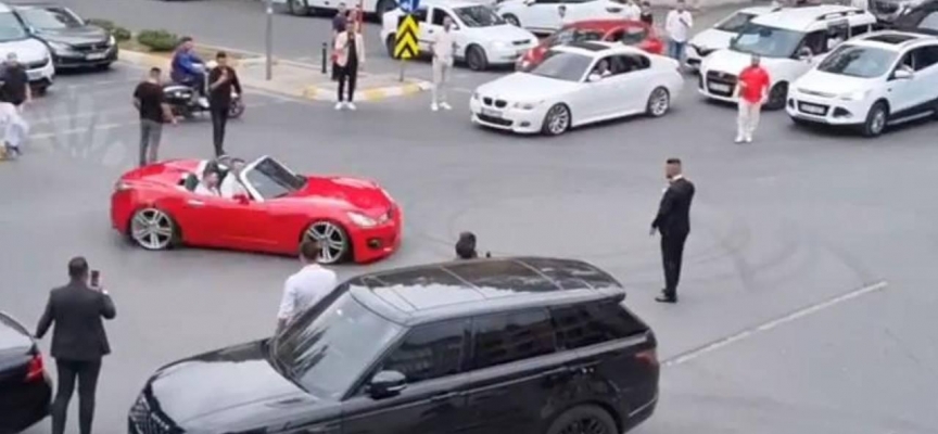Bayrampaşa Ali Fuat Başgil Caddesi'nde 18 Eylül Pazar günü, düğün konvoyu yapan gruptaki 3 sürücü, trafiği durdurarak drift attı.