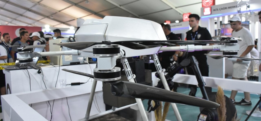 Lazer silahlı dronu "Eren", Samsun'da düzenlenen dünyanın en büyük havacılık, uzay ve teknoloji festivali TEKNOFEST'teki İçişleri Bakanlığı standında sergileniyor.