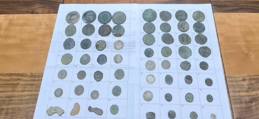 Yapılan aramada farklı kültür ve dönemlere ait tarihi eser niteliğinde olduğu değerlendirilen 60 sikke bulundu.