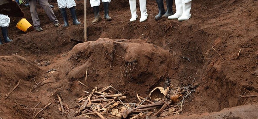 Uzman köpeklerin de yardımıyla mezardan 6 kişiye ait olduğu düşünülen ceset kalıntıları çıkarıldı.