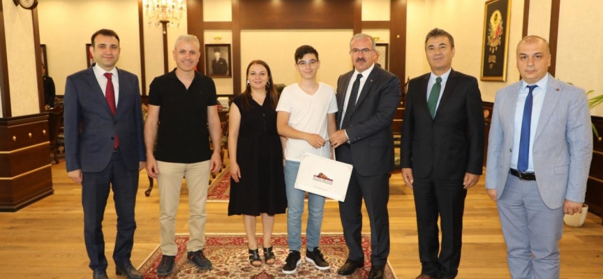 5 Haziran'da yapılan merkezi sınavda tam puan alan Usta ile ebeveynlerini makamında kabul eden Toraman, aile ile sohbet etti.