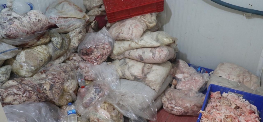 Bu kapsamda ekipler, kent merkezinde bir işletmede 900 kilogram bozulmuş et, sakatat ve iç yağı buldu.