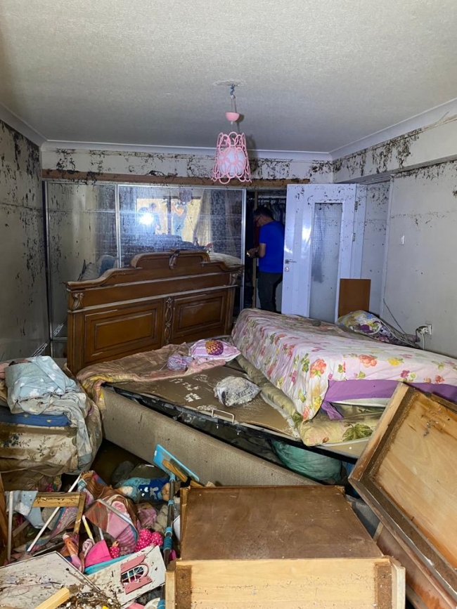 4 katlı binanın giriş ve alt katlarındaki daireler, suyla doldu. Eksi 1'inci katta annesi Figen Y. ile birlikte yaşayan Busenur Doğanay, suyla dolan evinde mahsur kaldı.