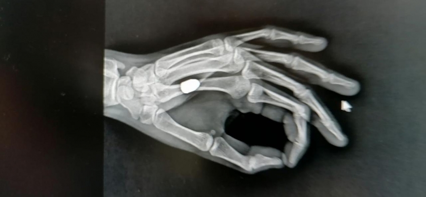 Sürmene Devlet Hastanesi Başhekimi Osman Yoloğlu, röntgen filminde mermi tespit ettiklerini belirterek, "Elinde ağrı hissettiğini söyleyen hastamızın elinde de bir yarası vardı. Yaptığımız tetkikler sonrası elinde, mermi çekirdeği olduğunu tespit ettik. Hastamızı hemen ameliyata aldık ve elinden mermi çekirdeğini çıkarttık. Durumu, çok şükür iyi” diye konuştu.
