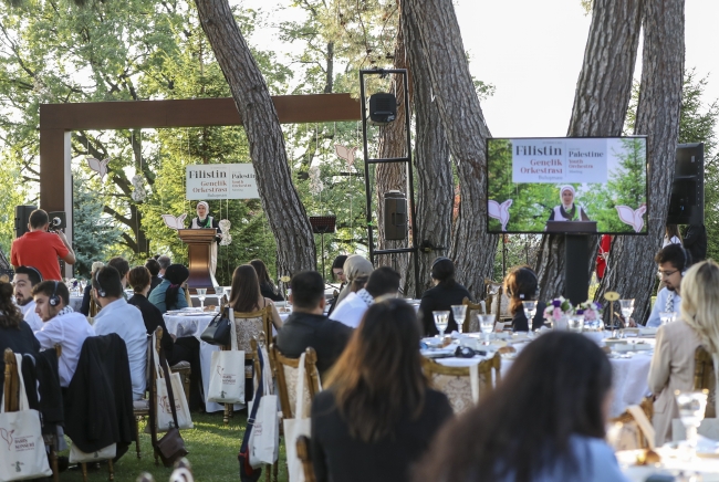 Emine Erdoğan, daveti üzerine Barış Konseri vermek üzere Türkiye'ye gelen Filistin Gençlik Orkestrası üyeleri ve Cumhurbaşkanlığı Senfoni Orkestrası (CSO) sanatçıları ile Beştepe Devlet Konukevi'nde düzenlenen programda buluştu.