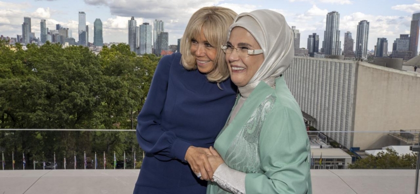BM 77. Genel Kurulu dolayısıyla ABD'nin New York kentinde bulunan Cumhurbaşkanı Erdoğan'a eşlik eden Emine Erdoğan, Fransa Cumhurbaşkanı Macron'un eşi Brigitte Macron ile Türkevi'nde görüştü.