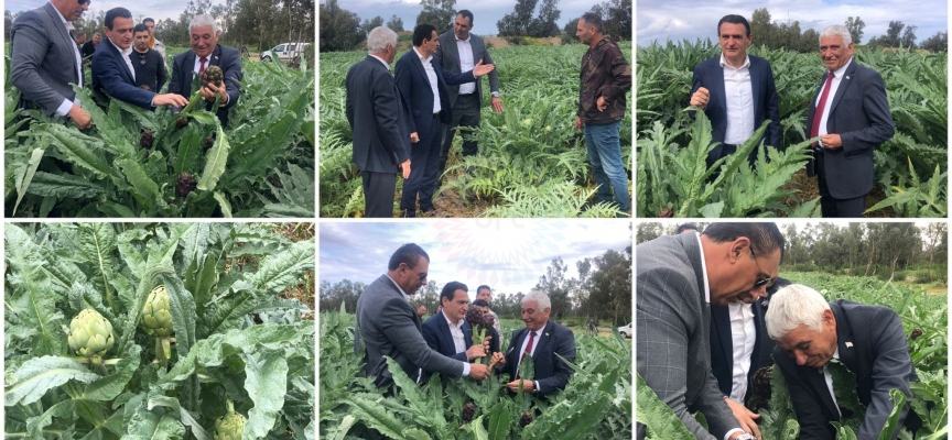 Tarım ve Doğal Kaynaklar Bakanı Dursun Oğuz, enginar projesi örnekleme alanını ziyaret ederek, bölgede incelemelerde bulundu.