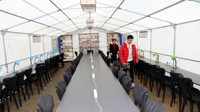 Liselere Giriş Sistemi kapsamındaki sınava hazırlanan kız kardeşiyle halk otobüsüyle her gün çadır kütüphaneye geldiğini anlatan Evliyaoğlu, "Sınava hazırlık için oturmuş bir düzenimiz vardı, depremden sonra bozuldu. Elimize böyle güzel bir imkan geçti, bunu değerlendiriyoruz. Burada sınava hazırlanıyoruz." dedi.