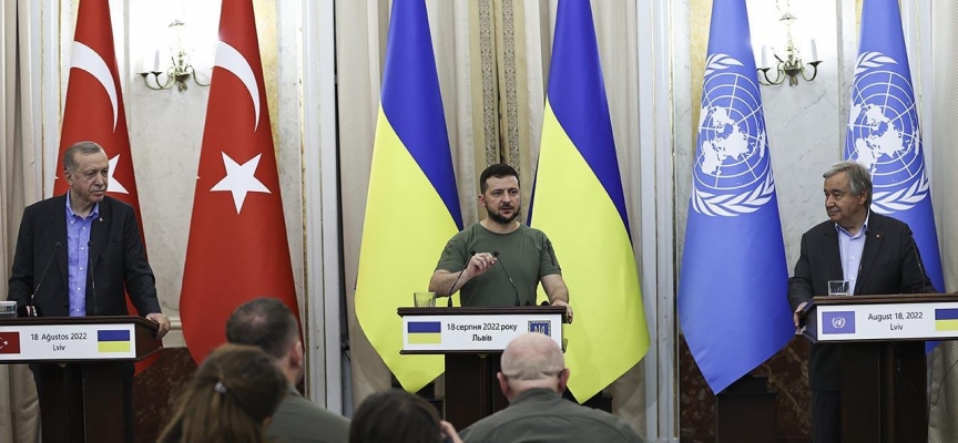 Bugünkü temaslarımızda mevcut mekanizmanın faaliyetlerinin artırılarak sürdürülmesi için atılabilecek adımlar üzerinde durduk. 3’lü görüşmemizde ayrıca İstanbul Mutabakatı’nın oluşturduğu müspet havanın kalıcı barışa tahvil edilmesi imkanlarını da değerlendirdik.Diplomatik sürecin canlandırılması için uluslararası toplumun daha fazla sorumluluk üstlenmesi gerektiğine özellikle işaret ettim. Şahsen savaşın en nihayetinde müzakere masasında sonuçlanacağına olan inancımı muhafaza ediyorum. Esasen Sayın Zelenskiy ve Sayın Guterres de aynı fikirdeler. Tüm mesele müzakere masasına giden en kısa ve adil yolu tespit etmektir.