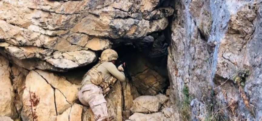 Arazide arama tarama faaliyeti yapan güvenlik güçleri, dağlık alanda teröristlerce kullanılan 4 katlı bir mağara tespit etti.