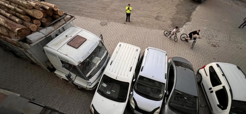 İlçeye bağlı Yasin Haşimoğlu Mahallesi'nde Esat Turgut'a ait park halindeki tomruk yüklü kamyon, aniden hareket etmeye başladı.