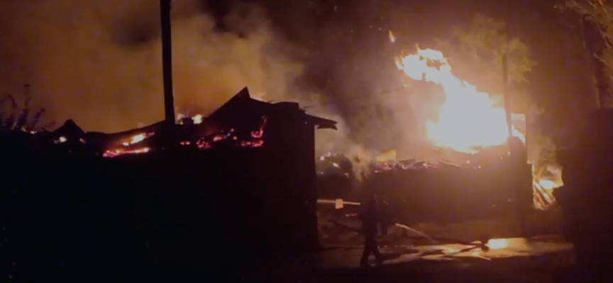 Hızla büyüyen yangında alevler samanlığın yanındaki evlere sıçradı.