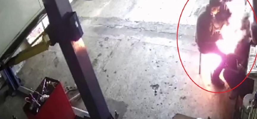 Olay anı iş yerinin güvenlik kamerasınca kaydedildi.