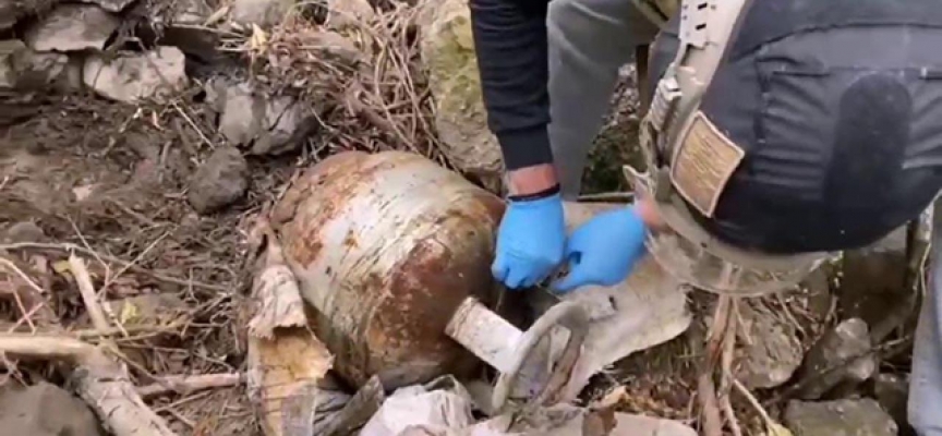 Güvenlik güçleri yapılan inceleme sonrası bombayı kontrollü olarak imha etti.