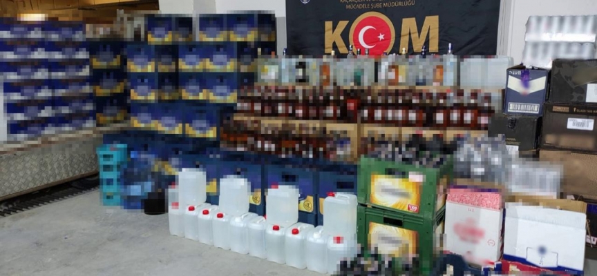 Aramalarda 3 bin 314 litre kaçak alkol, 1430 litre etil alkol ile sahte içki yapımında kullanılan çok sayıda kit, bandrol ve kapüşon, bir tabanca ile 22 mermi ele geçirildi.