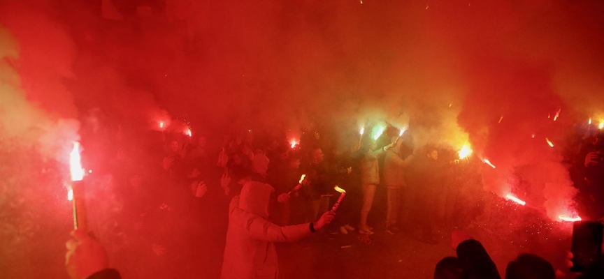 Tesislerde tezahüratlarda bulunan taraftarlar, meşaleler ve şarkılar eşliğinde eğlendi.