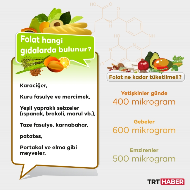 Yaşlıların yanı sıra yetişkinlerde de folat tüketiminin önemini vurgulayan Akyüz, bu vitamin hangi gıdalarda bulunur, günlük tüketim ne kadar olmalı sorularını yanıtlıyor: