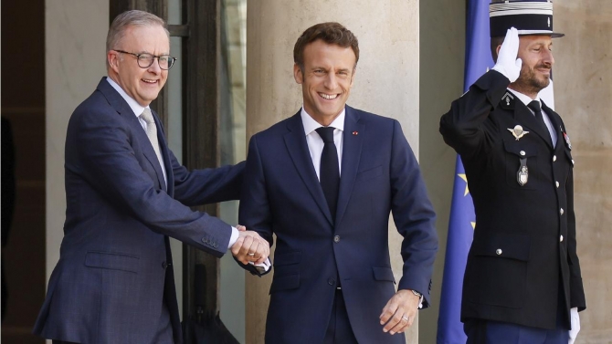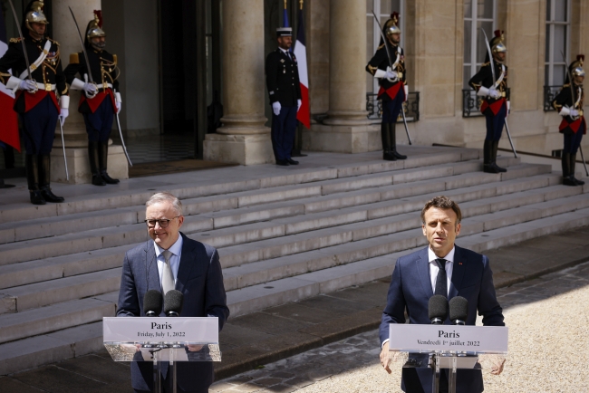 Fransa Cumhurbaşkanı Emmanuel Macron ve Avustralya Başbakanı Anthony Albanese, başkent Paris'te bir araya geldi.